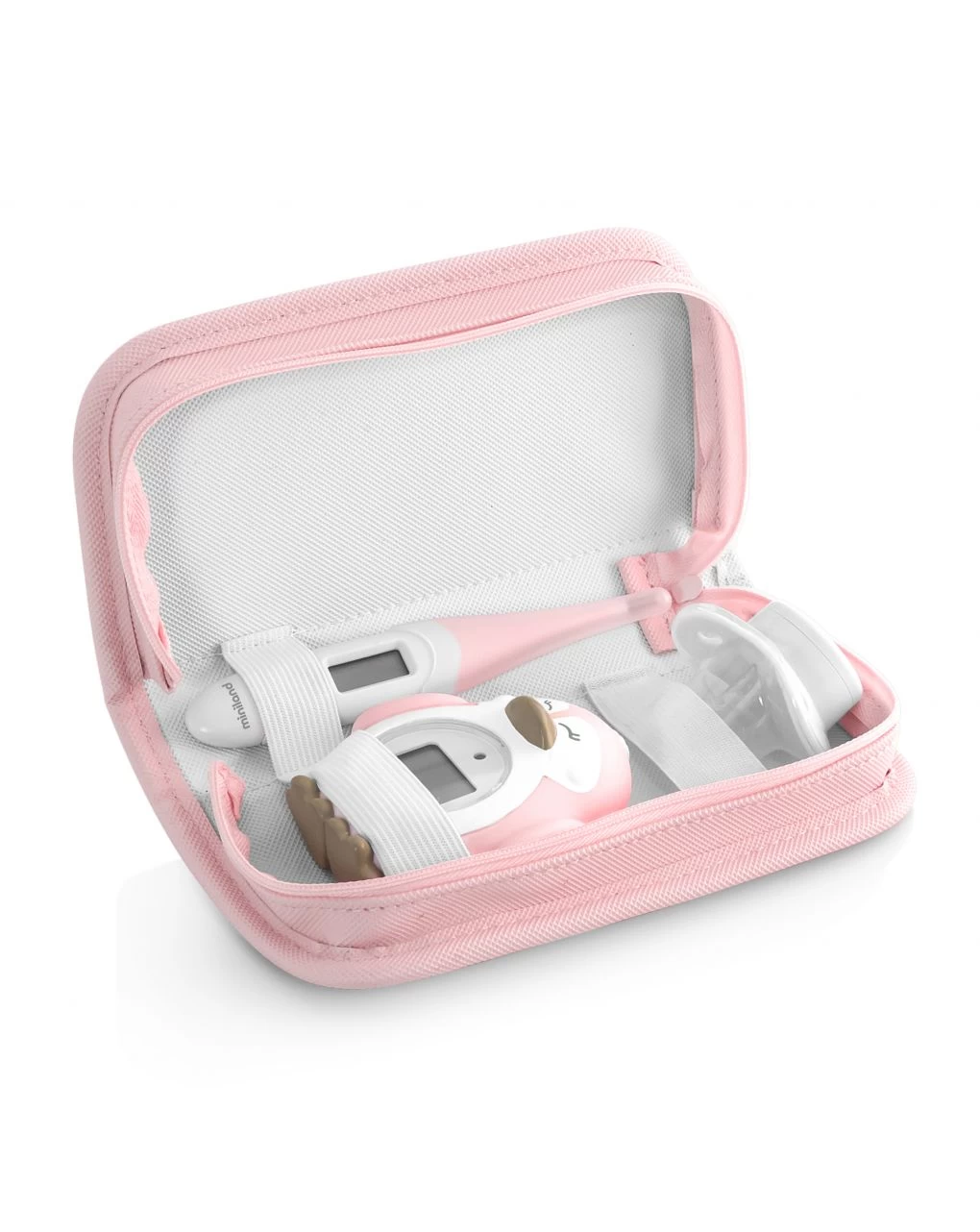 Termometro per il corpo: punta morbida e flessibile; Misurazione rapida della temperatura, con avviso sonoro di fine misurazione; Indicatore visivo e sonoro di febbre; Spegnimento automatico. Termometro da bagno: misura rapidamente la temperatura dell’acqua e dell’ambiente; Allerta di temperatura alta o bassa; Compagno di giochi nella vasca da bagno che rispetta gli standard di sicurezza dei giocattoli; Spegnimento automatico. Termometro succhiotto: misurazione rapida della temperatura con avviso sonoro alla fine; Indicatore sonoro di febbre; Resistente all’acqua; Imita la forma dei succhiotti convenzionali, con consistenza morbida e gradevole, a beneficio della massima comodità del bebè; Spegnimento automatico.