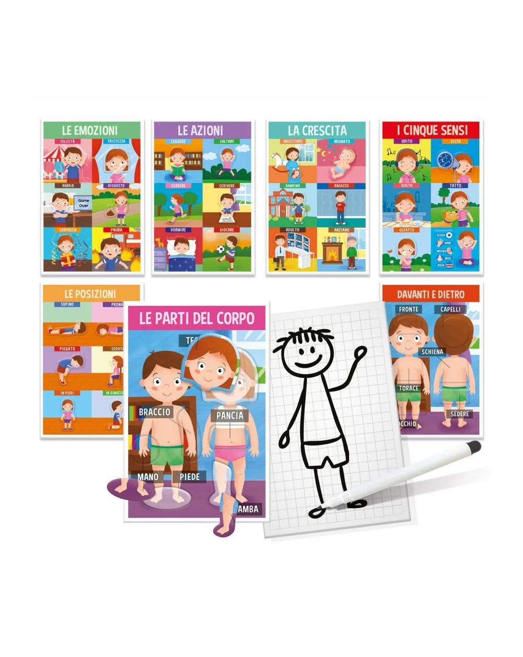 Un divertente gioco ad incastri per riconoscere la propria identità fisica ed emotiva. Il bambino scopre le parti e le posizioni del corpo, i cinque sensi, le espressioni del viso e altro ancora. In più, rappresenta il corpo umano disegnandolo.