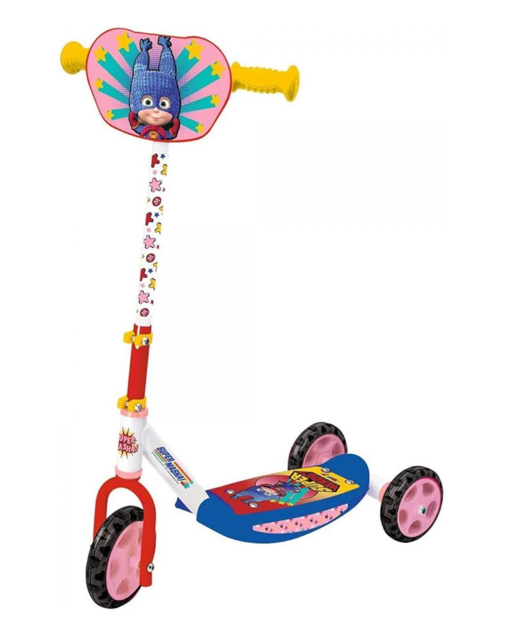 Sfreccia con Masha sul Monopattino tre ruote di Masha e Orso! Colorato scooter con robusta struttura in metallo. L’ampia base per i piedi e la stabilità garantita dalle tre ruote (1 anteriore e 2 posteriori) lo rendono molto sicuro, adatto per le prime corse su ruote e per i primi slalom del vostro bambino/a. Manubrio regolabile su due posizioni: 67 e 70 cm. Ruote silenziose e traslucide Pedana antiscivolo Portata massima 20 kg.