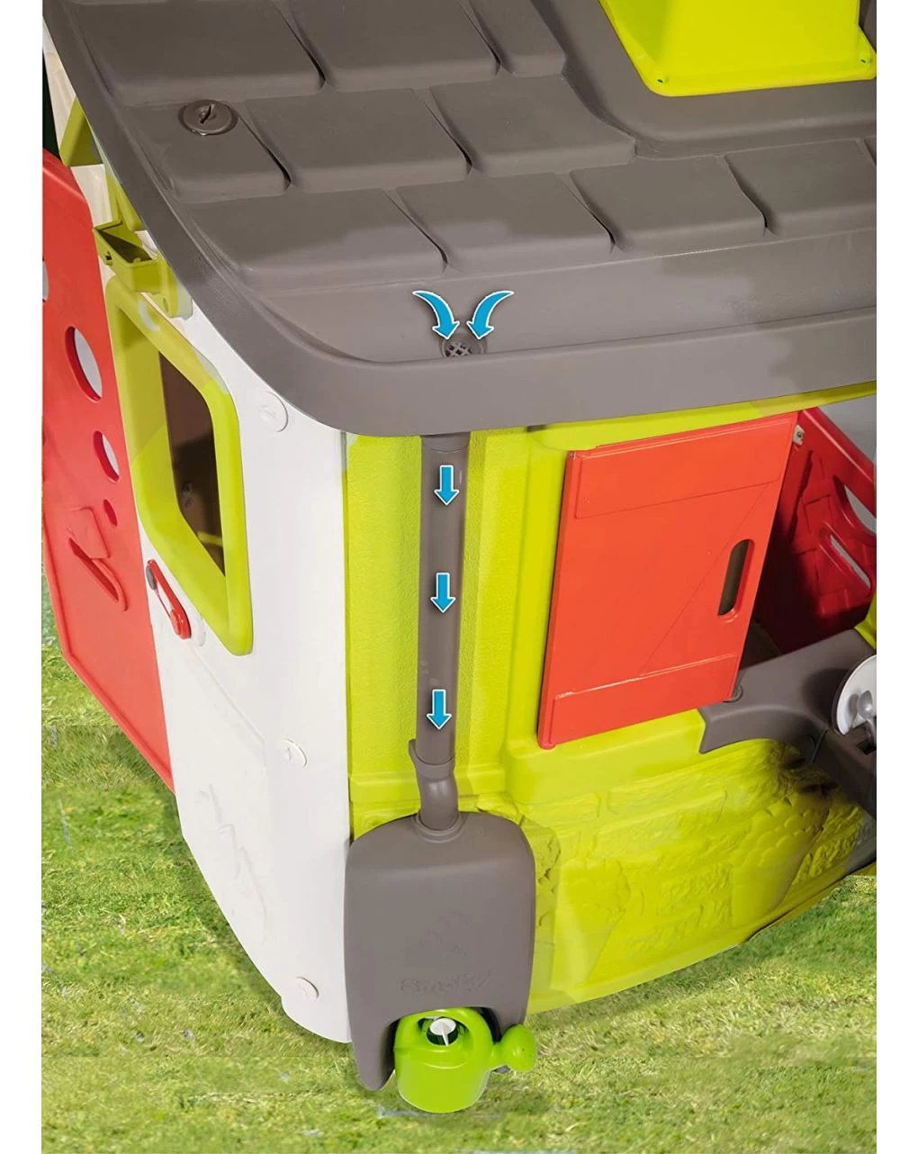 Modulo pluviale con serbatoio per la raccolta dell’ acqua. Si adatta alle casette Neo Jura Lodge, Neo Jura Lodge Special, Chef house hamburgeria, Garden house, Neo Amica. Include una grondaia, un serbatoio, un rubinetto e un annaffiatoio. Trattamento anti UV per garantire la durata dei colori nel tempo. Made in France.