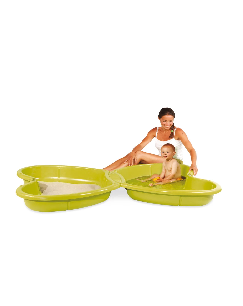 Con acqua e/o sabbia. Richiudibile e dotata di comodo seggiolino centrale. Funzione Water Fun integrata.
