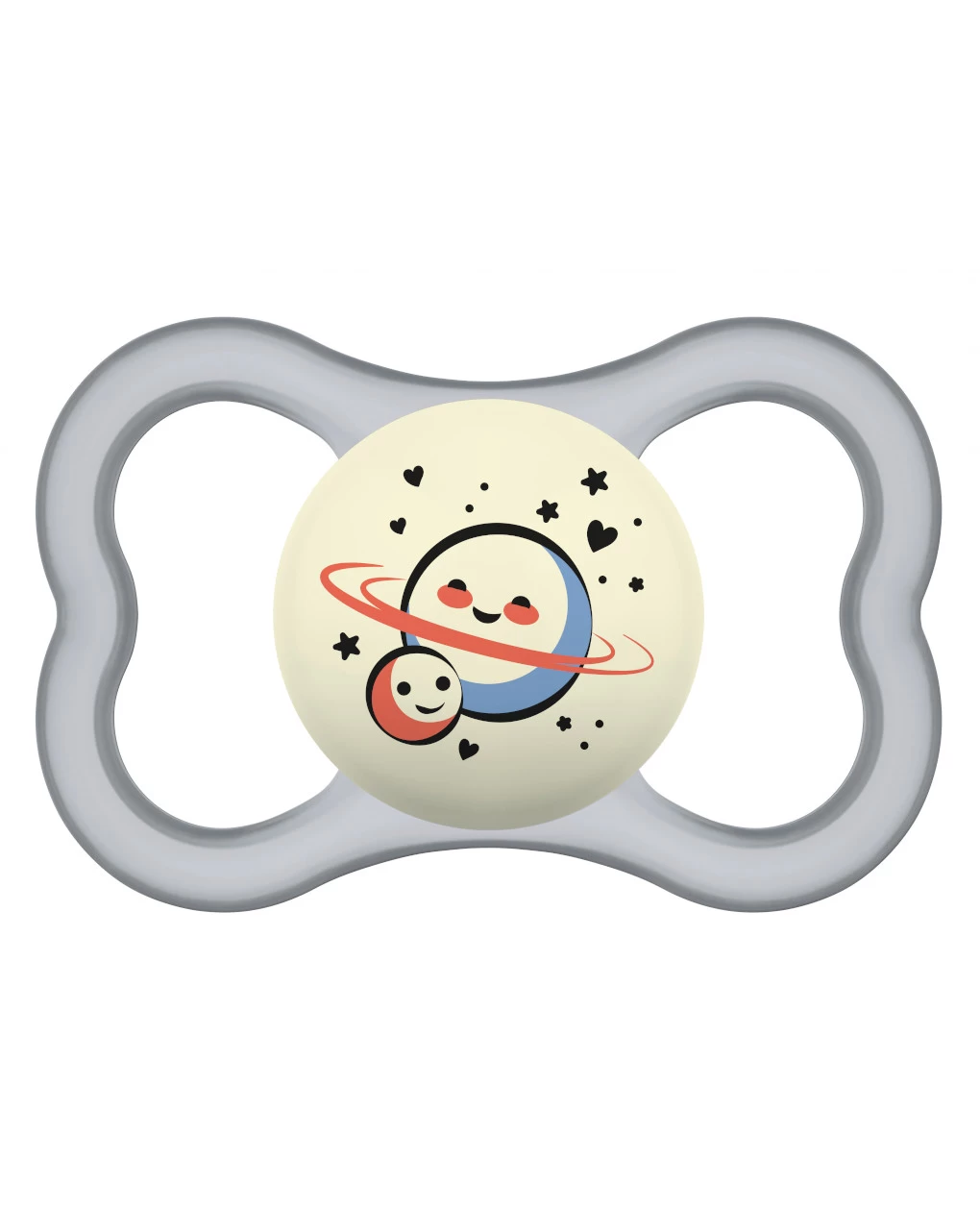 Quando il bebè di notte chiede il ciuccio, non è piacevole mettersi a cercare. Il bottone del ciuccio MAM Supreme Night si illumina al buio, può essere trovato facilmente dal bimbo o dai genitori, contribuendo a notti più serene.