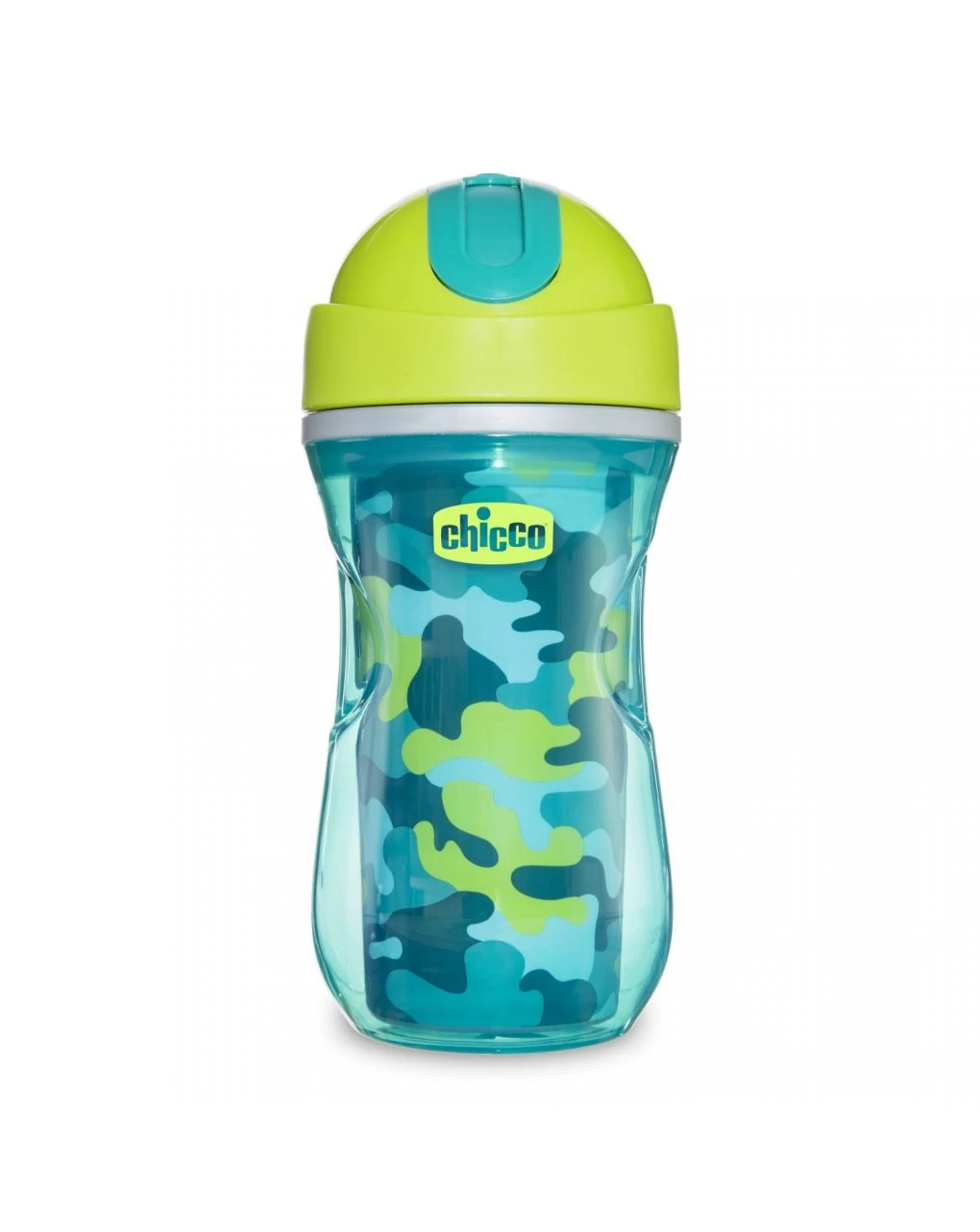 Tazza per bambini dai 14 mesi, ideale per essere utilizzata fuori casa, dotata di chiusura a scorrimento per mantenere la cannuccia pulita. Cannuccia in silicone, beccuccio resistente ai morsi e bottiglia isolante che mantiene la temperatura dei liquidi. Provvista di un sistema integrante anti-goccia.