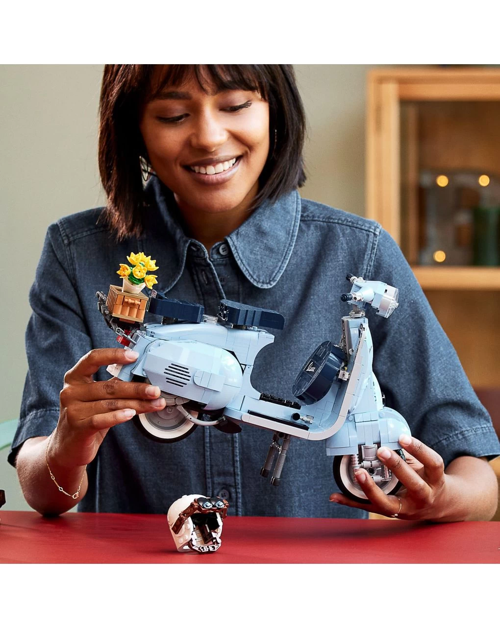 Questo modellino riproduce le linee eleganti e morbide della celebra Vespa 125, con dettagli originali come il logo Vespa e la classica targa italiana degli anni ’60. Ispirato all’originale Vespa Piaggio, la LEGO Vespa 125 è disponibile in blu pastello, un colore molto raro che sicuramente susciterà l’interesse di tutti gli appassionati dei set di costruzioni LEGO da collezione.